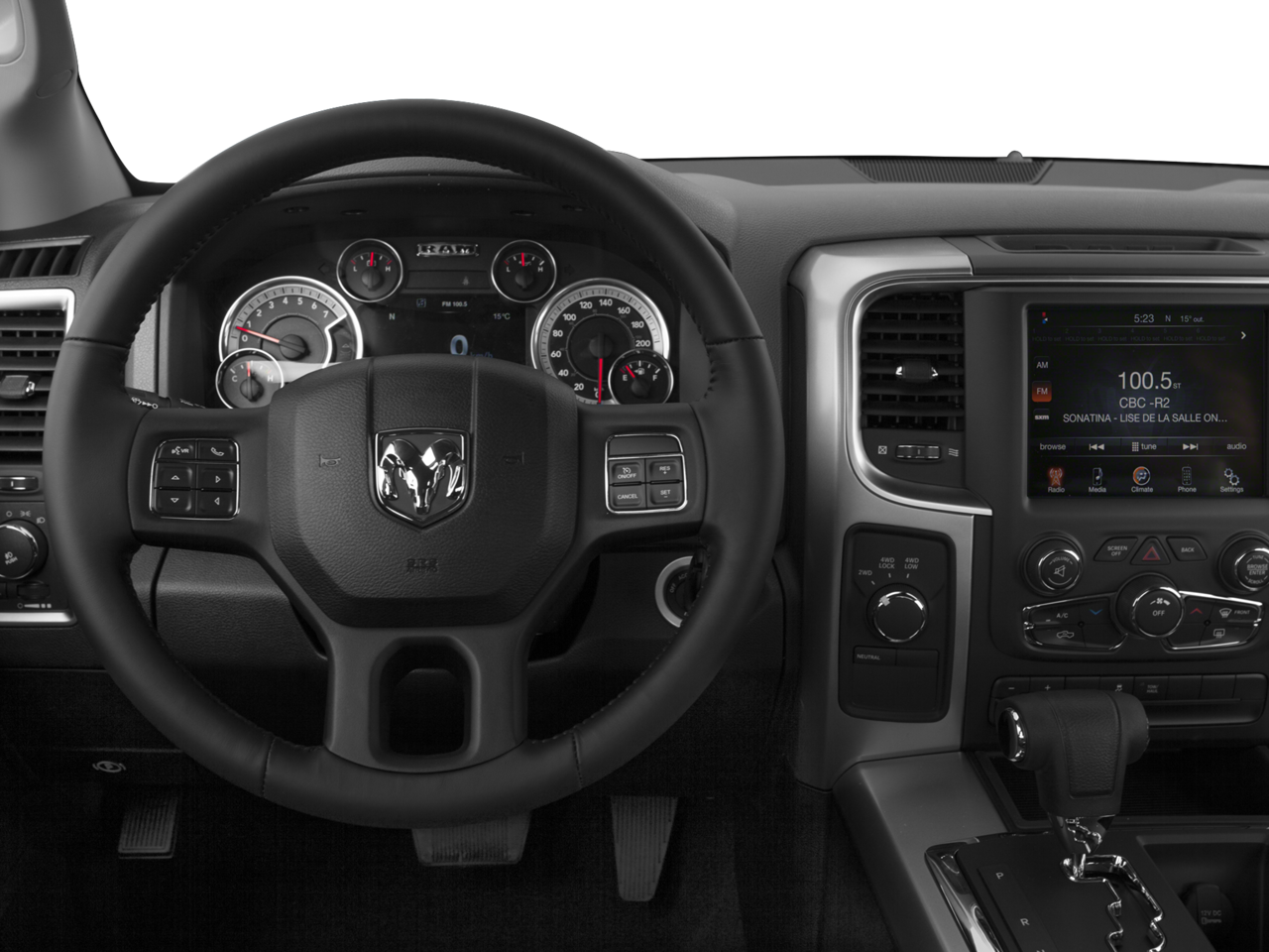 Start this Ram 1500 from inside with remote start. Our dealership has already run the CARFAX report and it is clean. A clean CARFAX is a great asset for resale value in the future. This Ram 1500 offers Automatic Climate Control for personalized comfort. with XM/Sirus Satellite Radio you are no longer restricted by poor quality local radio stations while driving the Ram 1500. Anywhere on the planet, you will have hundreds of digital stations to choose from. Keep your hands warm all winter with a heated steering wheel in this unit . See what's behind you with the back up camera on the Ram 1500. This unit has four wheel drive capabilities. This 1/2 ton pickup is painted with a sleek and sophisticated black color. It has a V6, 3.6L high output engine. Set the temperature exactly where you are most comfortable in this 2015 Ram 1500 . The fan speed and temperature will automatically adjust to maintain your preferred zone climate.
