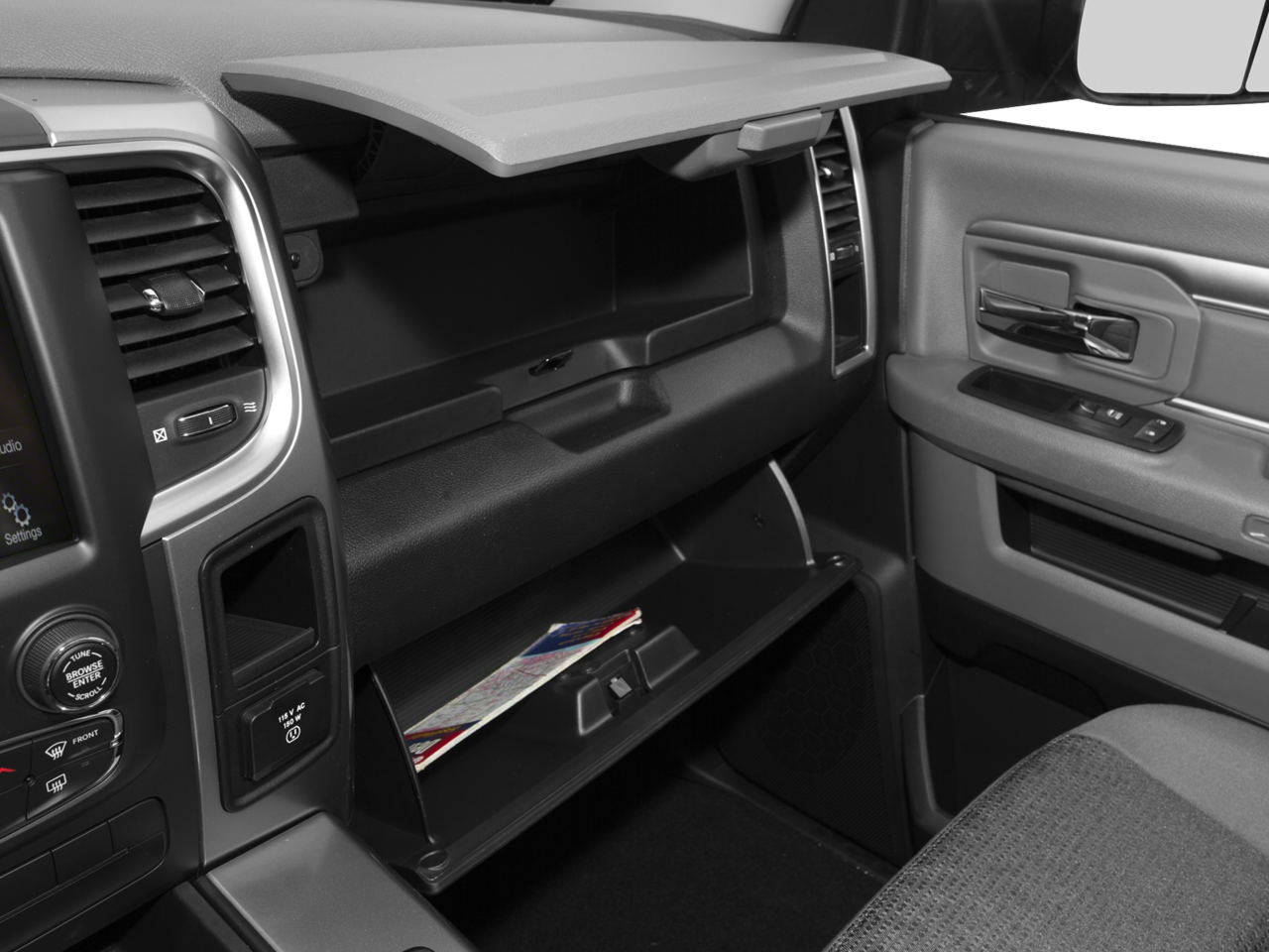 Comfort Group: Heated Front Seats; Heated Steering Wheel; Air Conditioning ATC with Dual Zone Control. Luxury Group: Leather Wrapped Steering Wheel; Exterior Mirrors with Supplemental Signals; Rear Dome with On/off Switch Lamp; Underhood Lamp; Steering Wheel Mounted Audio Controls; Exterior Mirrors Courtesy Lamps; Glove Box Lamp; Ash Tray Lamp; Rear View Auto Dim Mirror with Microphone; Auto Dimming Exterior Mirrors; Power Folding Mirrors; Power Heated Fold-Away Mirrors; Sun Visors with Illuminated Vanity Mirrors; 7" TFT Instrument Cluster; Overhead Console. Quick Order Package 22T Outdoorsman: 121 Litre Fuel Tank; Black Door Handles; Outdoorsman Badging; Fog Lamps; Accent Fender Flares; Outdoorsman Group; Rear Extra Heavy Duty Shock Absorbers; Anti-Spin Differential Rear Axle; Body Colour Grille; Class IV Receiver Hitch; Front and Rear Rubber Floor Mats. Monotone Outdoorsman: Bright Front and Rear Bumpers; Body Colour Fender Flares. Remote Start and Security Group: Remote Start System; Security Alarm. Protection Group: Tow Hooks; Transfer Case Skid Plate Shield; Front Suspension Skid Plate. Power Sunroof. RamBox Cargo Management System. Premium Cloth Bucket Seats. Uconnect 8.4A AM/FM/SXM/BT Radio. 20" X 8" Semi-Gloss Black Aluminum Wheels. Spray in Bedliner. ParkView Rear Back-Up Camera. 9 Amplified Speakers with Subwoofer. 5 Year Renewable Master Shield Fabric Protector Plan. Rear Window Defroster. 3.55 Rear Axle Ratio. **Equipment listed is based on original vehicle build and subject to change. Please confirm the accuracy of the included equipment by calling the dealer prior to purchase.**