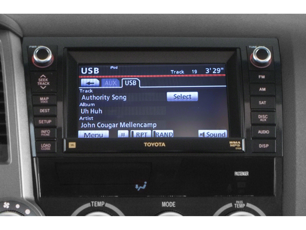 - Radio w/Seek-Scan, In-Dash Mounted Single CD, MP3 Player, Clock, Speed Compensated Volume Control, Aux Audio Input Jack, Steering Wheel Controls, Voice Activation and Entune External Memory Control