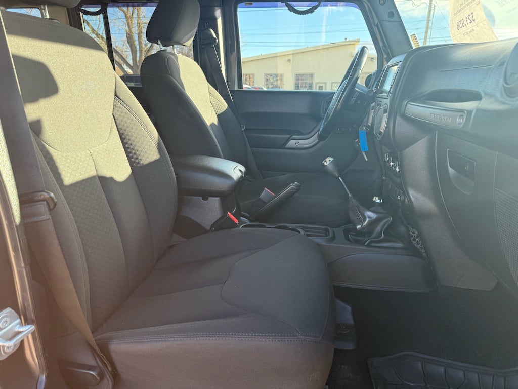 Quick Order Package 23W Willys Wheeler: Rear Passenger Assist Handles Kit; Willys Wheeler Package; Black Jeep Grille Badge; SIRIUS Satellite Radio; Power Convenience Group; Deep Tint Sunscreen Windows; 4-Wheel Drive Swing Gate Decal; MOPAR Slush Mats; Willys Wheeler Grille; Low Gloss Black Wrangler Decal; Willys Hood Decal; Rock Rails; Auto Dim Mirror with Reading Lamp; Performance Suspension; Front 1-Touch Down Power Windows; Anti-Spin Differential Rear Axle; Power Heated Mirrors; Jeep Trail Rated Kit; 17" X 7.5" High Gloss Black Willys Wheels; Security Alarm; 3.73 Rear Axle Ratio; Power Locks; Remote Keyless Entry. Connectivity Group: Vehicle Information Center; Remote USB Port; Leather Wrapped Steering Wheel; Uconnect Voice Command with Bluetooth®; Tire Pressure Monitoring Display. Quick Order Package 23K Willys Wheeler. Black 3-Piece Hard Top. Alpine 9-Speaker with All Weather Subwoofer. **Equipment listed is based on original vehicle build and subject to change. Please confirm the accuracy of the included equipment by calling the dealer prior to purchase.**