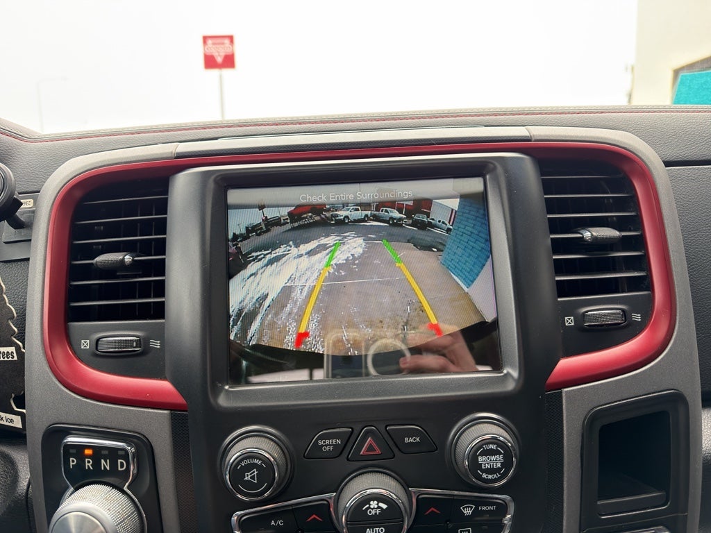 Start this unit from inside with remote start. The installed navigation system will keep you on the right path. The vehicle is equipped with the latest generation of XM/Sirius Radio. This unit features a hands-free Bluetooth® phone system. Protect this vehicle from unwanted accidents with a cutting edge backup camera system. The rear parking assist technology on this vehicle will put you at ease when reversing. The system alerts you as you get closer to an obstruction. Keep your hands warm all winter with a heated steering wheel in this model . This unit has a clean CARFAX vehicle history report. The Ram 1500 has Push Start for hassle-free ignition. The vehicle keeps you comfortable with Auto Climate. This vehicle has four wheel drive capabilities. This 1/2 ton pickup has a V8, 5.7L high output engine. A trailer braking system is already installed on this 1/2 ton pickup. Maintaining a stable interior temperature in this Ram 1500 is easy with the climate control system.