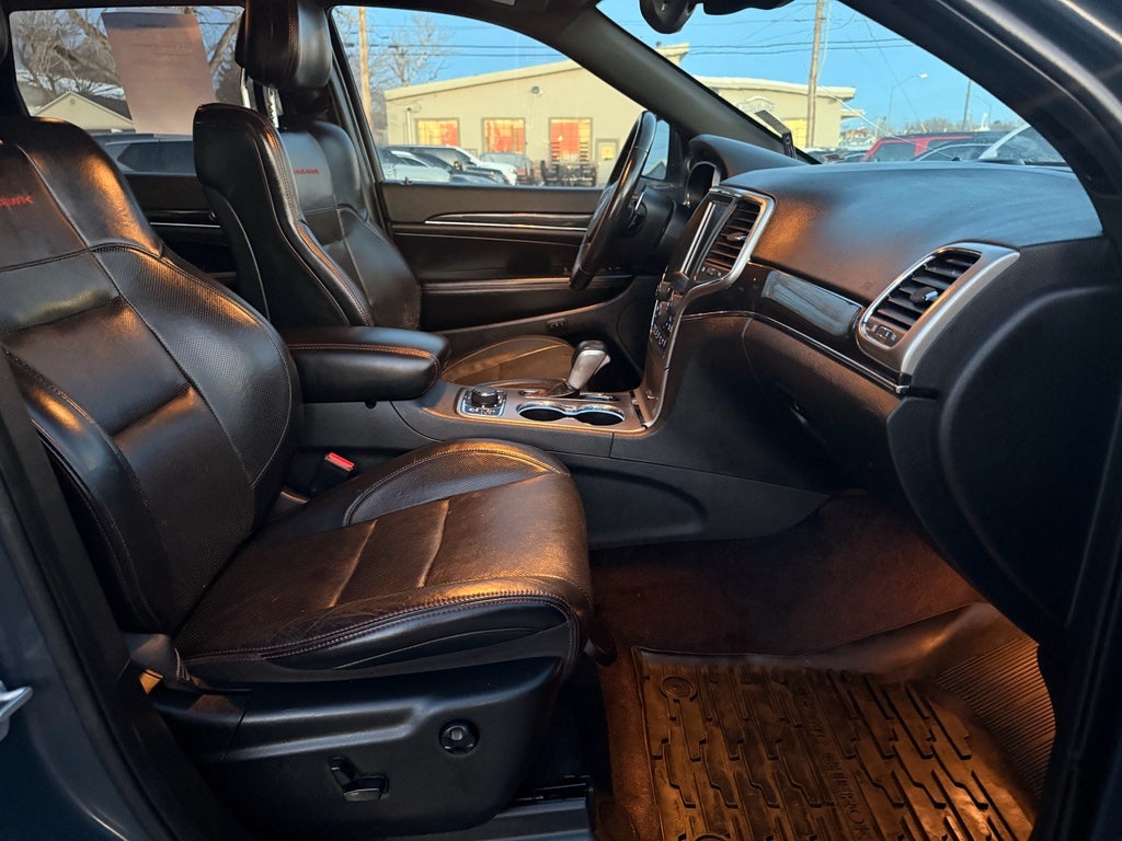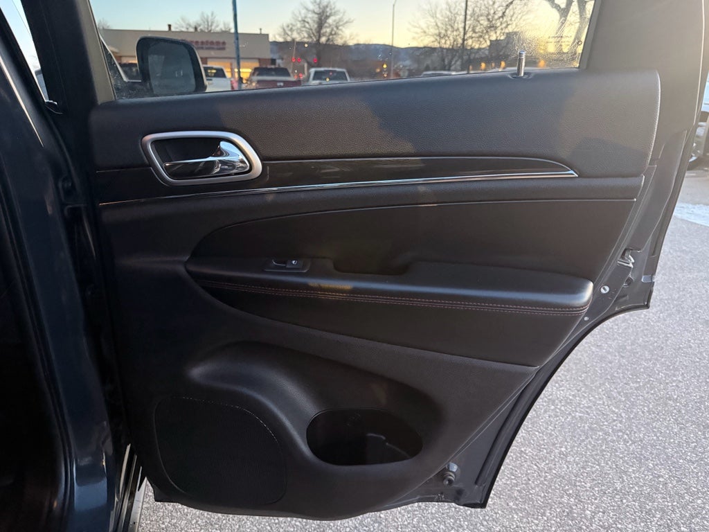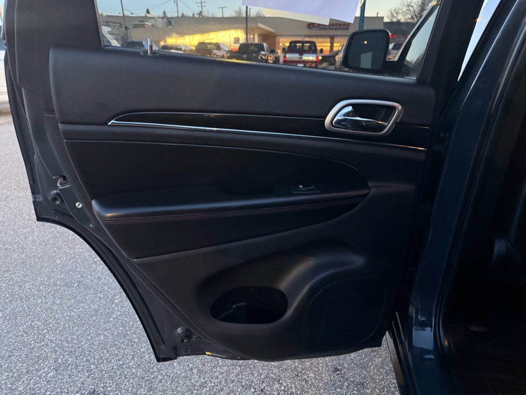 This model is equipped with the latest generation of XM/Sirius Radio. Never get into a cold vehicle again with the remote start feature on the vehicle. The vehicle stays safely in its lane with Lane Keep Assist. Our dealership has already run the CARFAX report and it is clean. A clean CARFAX is a great asset for resale value in the future. You'll never again be lost in a crowded city or a country region with the navigation system on this mid-size suv. Heated seats for those cold winter days are included in the Jeep Grand Cherokee. The vehicle's Lane Departure Warning keeps you safe by alerting you when you drift from your lane. It has automated speed control that adjusts to maintain a safe following distance, enhancing highway driving convenience. Nothing dresses up a vehicle better than a set of high end premium wheels. This mid-size suv will allow to see the road and so much more with the HID headlights.