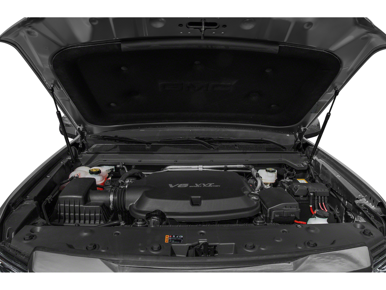 Driver Alert Package: Forward Collision Alert; Lane Departure Warning. Preferred Equipment Group 4SD: Heated Steering Wheel; Hitch Guidance; 255/55R20 AS BW Tires; Ventilated Driver Seat; Ventilated Front Passenger Seat; 5" Rectangular Chrome Assist Steps; Ultrasonic Rear Parking Assist; Black Spray-On Bedliner with GMC Logo; AM/FM Radio with 8" Diagonal Multi-Touch Display Navigation; Tow/haul Mode; 2-Speed Autotrac Electric Transfer Case; Trailering Package; Polished Exhaust Tip; 3.6L DI DOHC V6 VVT Engine. Onyx Black. 1st and 2nd Rows All-Weather Floor Liner. Chrome Recovery Hooks. Wheel Locks (set of 4). **Equipment listed is based on original vehicle build and subject to change. Please confirm the accuracy of the included equipment by calling the dealer prior to purchase.**
