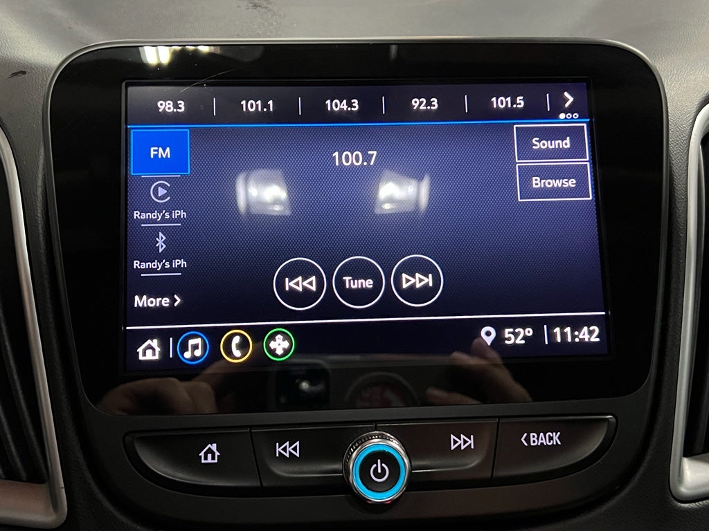 - Audio system, Chevrolet Infotainment 3 system, 8" diagonal color touchscreen, AM/FM stereo. Additional features for compatible phones include: Bluetooth® audio streaming for 2 active devices, voice command pass-through to phone, Apple CarPlay and Android Auto capable.