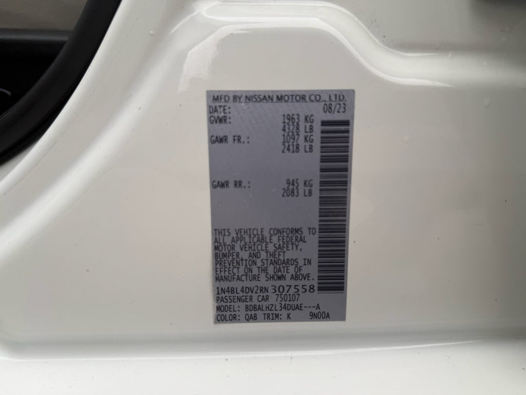 SV Premium Package: Center Console Side Panel Stitched/padded; Single Panel Moonroof; ProPILOT Assist; Exhaust Finishers; Intelligent Cruise Control with Full Speed Range and Hold; Wrapped and Stitched Steering Wheel; Steering Assist; Body-Color Outside Mirrors; Intelligent Lane Intervention (I-LI); Premium Interior Finishers; Heated Front Seats; Leather Shift Knob; NissanConnect; Active Ride Control; Intelligent Trace Control; Traffic Sign Recognition; 2-Way Driver Power Lumbar Support; Driver and Passenger Sun Visors Light; Electronic Parking Brake with Auto-Hold. Premium Paint - Pearl White. Floor Mats/trunk Mat/hideaway Net. Body-Colored Splash Guards. Trunk Organizer Tray. **Equipment listed is based on original vehicle build and subject to change. Please confirm the accuracy of the included equipment by calling the dealer prior to purchase.**